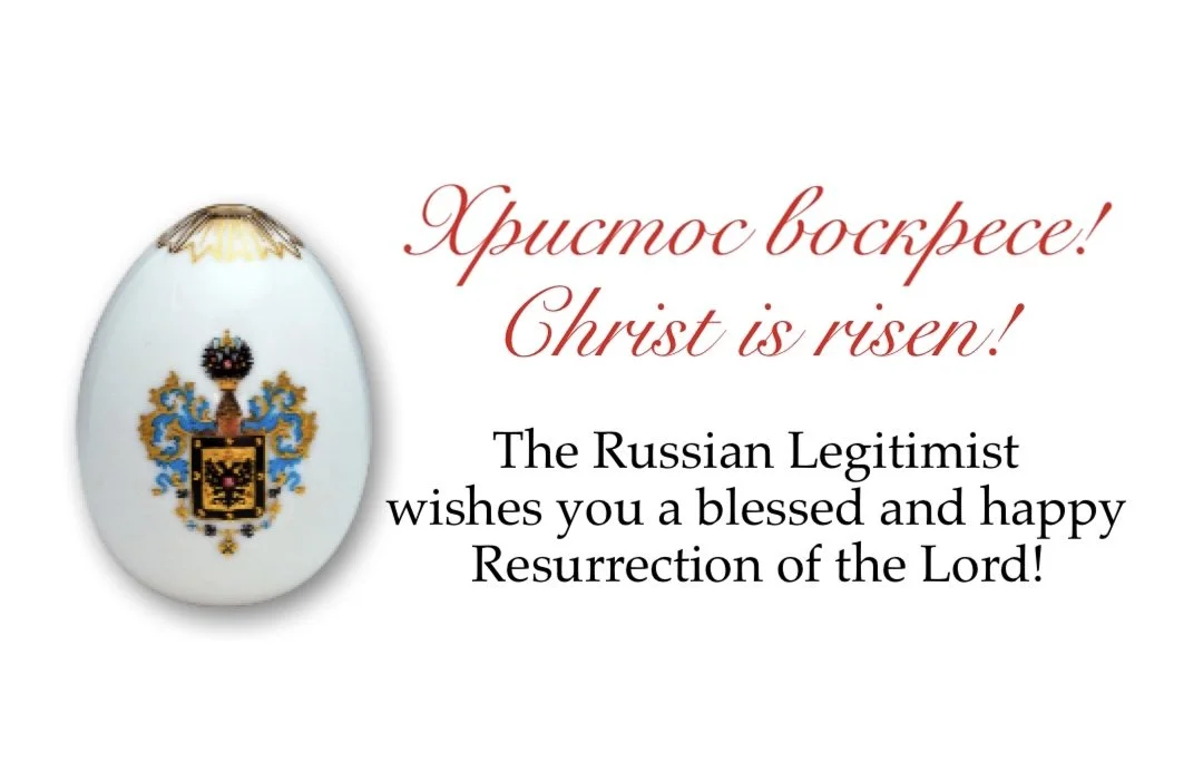The Head of the Russian Imperial House, H.I.H. The Grand Duchess Maria of Russia, her son and heir, H.I.H. The Tsesarevich and Grand Duke George of Russia, and His Spouse, H.S.H. Princess Victoria Romanovna, extend greetings to all their countrymen on the Bright Feast of the Resurrection of Christ, and thank all those who have sent Paschal greetings to them and offered their prayers for H.S.H. Prince Alexander Georgievich, for whom this is his first Holy Pascha.